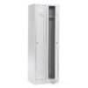 Kompletny moduł szafy z 2 przegrodami pełnej wysokości. W pełni spawana konstrukcja z blachy stalowej lakierowanej proszkowo. Wykończenie lakierem proszkowym zapewnia twardą i wytrzymałą powierzchnię, która wytrzymuje intensywne, codzienne użytkowanie w miejscach publicznych. Praktyczny odcień szarości oraz kompaktowy design sprawia, że szafa stanowi budżetowe rozwiązanie do przechowywania odzieży i rzeczy osobistych.