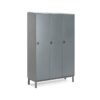 Szafy ubraniowe posiadają trwałą konstrukcję z lakierowanej proszkowo blachy stalowej. Drzwi wyposażone w solidne zawiasy meblowe. Daszek jest delikatnie pochylony, co zapobiega gromadzeniu się kurzu oraz pozostawianiu przedmiotów w szatni. Dokup zamek dostosowany do potrzeb (sprzedawane oddzielnie, patrz akcesoria).