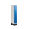 Szafy ubraniowe posiadają trwałą konstrukcję z lakierowanej proszkowo blachy stalowej. Drzwi wyposażone w solidne zawiasy meblowe. Daszek jest delikatnie pochylony, co zapobiega gromadzeniu się kurzu oraz pozostawianiu przedmiotów w szatni. Dokup zamek dostosowany do potrzeb (sprzedawane oddzielnie, patrz akcesoria).