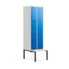 Szafy ubraniowe posiadają trwałą konstrukcję z lakierowanej proszkowo blachy stalowej. Drzwi wyposażone w solidne zawiasy meblowe. Daszek jest delikatnie pochylony, co zapobiega gromadzeniu się kurzu oraz pozostawianiu przedmiotów w szatni. Dokup zamek dostosowany do potrzeb (sprzedawane oddzielnie, patrz akcesoria).
