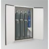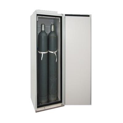 Przeznaczona do bezpiecznego przechowywania 2 butli ze sprężonym gazem 50 l w pomieszczeniach roboczych (laboratoria, hale produkcyjne), w pobliżu miejsca pracy w klasie ognioodporności 30 min, zgodnie z normą EN14470-2. Wyposażona w drzwi rozwierane 1-skrzydłowe, 1 uchwyt na dwie butle gazowe, 2 poziome szyny instalacyjne oraz płytę podlogową ze stali nnierdzewnej. Obudowa wykonana z blachy stalowej, malowanej proszkowo w kolorze jasnoszarym RAL 7035. Wnętrze pokryte laminatem HPL. Drzwi w kolorze żółtym RAL 1007 z pneumatycznym wspomaganiem, nie wymagającym zasilania, co ułatwia otwieranie i zamykanie. Opcjonalnie dostępny wentylator do podłączenia przez złącze wentylacyjne DN 80, górna powierzchnia szafy. Zastosowanie śrub regulacyjnych pozwala na łatwe poziomowanie i ustawienie szafy. Wymiary zewnętrzne 595x598x2015 mm, wymiary wewnętrzne 492x430x1785 mm, waga 295 kg, normy EN14470-2, znak CE, DIN, uchwyt na dwie butle gazowe 1 szt, szyny instalacyjne 2 szt, drzwi 1-skrzydłowe (prawe), ognioodporność 30 min, szary/żółty.