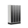 Szafka osobista na cokole ze wzmacnianymi drzwiami na zawiasach i gumową amortyzacją zapewniającą ciche zamykanie. Otwory wentylacyjne w górnej i dolnej części. Szafy dostarczamy bez zamków.​ Wysokiej jakości szafki osobiste wykonane z blachy stalowej lakierowanej proszkowo. Wykończenie lakierem proszkowym zapewnia trwałość oraz odporność na zarysowania i intensywne użytkowanie w trudnych środowiskach. Korpus wykonany z 0.7 mm blachy stalowej, drzwi ze stali o grubości 0.8 mm. Wzmocnione drzwi stalowe wyposażone w gumową amortyzację zapewniającą ciche zamykanie. Otwory wentylacyjne w dolnej i górnej części korpusu zapewniają dobry przepływ powietrza i zapobiegają zawilgoceniu szafy.