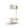 Wyposażona w cztery półki, z których jedna jest zamontowana na stałe. Najniższa półka znajduje się za praktycznymi drzwiami, które ukrywają przechowywane przedmioty. Mebel wykonano z laminatu, który jest zarówno wytrzymały, jak i łatwy do czyszczenia. Szafa jest dostarczona w stanie zmontowanym, wyposażona w solidne uchwyty oraz samozamykające zawiasy.