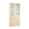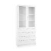 Szafę wyposażono w eleganckie szklane drzwi, które ukrywają zawartość 2 przestawnych półek. Regulacja wysokości półek sprawia, że łatwo dostosować szafę do potrzeb w zakresie przechowywania. Nasza szafa posiada 12 dolnych szuflad, w których można przechowywać przybory, materiały i inne akcesoria.