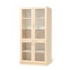 Wyposażona w cztery półki, z których jedna jest zamontowana na stałe. Pozostałe półki są regulowane, co oznacza, że można łatwo dostosować szafę do potrzeb w zakresie przechowywania. Szafa posiada 2 pary szklanych drzwi ze szkła hartowanego, co zapewnia elegancki wygląd mebla. Górna para drzwi dostarczana z zamkiem.