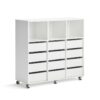 Dodaj kartonowe pudła, stojaki na prasę i materiały biurowe i stwórz doskonale zorganizowane miejsce do przechowywania.