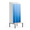 Szafa ubraniowa z półką na kapelusze, drążkiem z dwoma haczykami, pochyłym daszkiem i otworami wentylacyjnymi. Przygotowana do poprowadzenia dodatkowej wentylacji. Drzwi z blokadą szerokiego otwarcia (na kąt powyżej 90°) i gumową amortyzacją zapewniającą ciche zamykanie. Szafa dostarczana z ławeczką. Zamki sprzedawane oddzielnie, patrz akcesoria. Wysokiej jakości szafy do szatni oferujące wiele opcji adaptacji do potrzeb. Wykonane z wytrzymałej spawanej blachy stalowej lakierowanej proszkowo.
