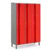 Szafy ubraniowe posiadają trwałą konstrukcję z lakierowanej proszkowo blachy stalowej. Drzwi wyposażone w solidne zawiasy meblowe. Daszek jest delikatnie pochylony, co zapobiega gromadzeniu się kurzu oraz pozostawianiu przedmiotów w szatni. Dokup zamek dostosowany do potrzeb (sprzedawane oddzielnie, patrz akcesoria).