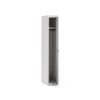 Szafa na ubrania z perforacją u góry i u dołu drzwi, wyposażona w półkę na kapelusze oraz drążek na ubrania z trzema haczykami. Drzwi wyposażone są w zamek z dwoma kluczami. Szafa dostarczana w stanie do samodzielnego montażu. Prosta, ale niedroga i praktyczna szafa na ubrania ze wzmocnionymi drzwiami na całej długości i ramą z malowanej proszkowo blachy. Powłoka proszkowa zapewnia wykończenie odporne na zarysowania, które wytrzymuje intensywne użytkowanie – idealne rozwiązanie do przestrzeni publicznych!
