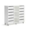 Wyposażona w drążek do zawieszania toreb lub odzieży oraz stojak do przechowywania obuwia. Wewnątrz dwie półki do ogólnego przechowywania. Dzięki stylowemu wyglądowi szafa nadaje się do biur, wejść, recepcji, przedszkoli, szkół czy centrów konferencyjnych.