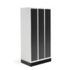 Szafka szkolna z trzema przegrodami pełnej wysokości. Każda przegroda jest wyposażona w trzy niewielkie półki i drążek na wieszaki z podwójnym haczykiem. Rama i drzwi są wzmocnione. Nasze szafy dostarczamy bez zamków (patrz akcesoria). Szafki szkolne Roz produkujemy we własnych fabrykach. Każda szafka jest pojemna i wytrzymała, dzięki czemu sprawdzi się w trudnym środowisku szkolnym.
