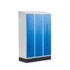 Szafa na ubrania ze skośnym daszkiem, składająca się z dwóch sekcji po dwie przegrody w każdej. Każdy schowek posiada zabezpieczenie przed szerokim otwarciem, haczyk oraz wentylację. Szafa dostarczana z podstawą w formie cokołu. Szafy dostarczamy bez zamków.​ Szafy typu L to doskonałe rozwiązanie do ciasnych pomieszczeń. Stanowią świetną alternatywę do pomieszczeń, w których nie ma wystarczająco dużo miejsca na szafy z pojedynczymi drzwiami, oferując równie dobre rozwiązanie. Nasze szafy stalowe są stabilne i niezwykle wytrzymałe. Sprawdzą się w różnych przestrzeniach i są szczególnie polecane do szkół oraz szatni. Każdy schowek zapewnia miejsce na rzeczy osobiste, takie jak odzież, torby i kaski.