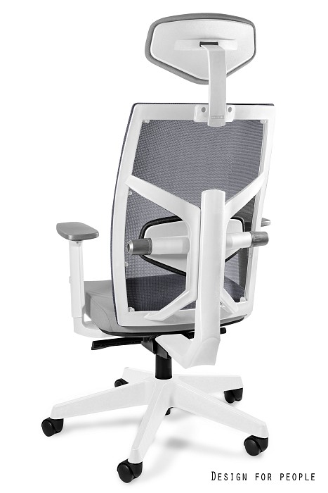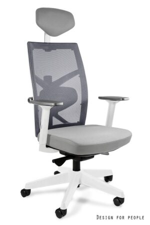 FOTEL BIUROWY TUNE – BIAŁY, SZARA SIATKA/SKÓRA NATURALNA HL-0 BIAŁA Unique