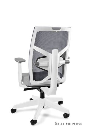 FOTEL BIUROWY TUNE M – BIAŁY, SZARA SIATKA/SKÓRA NATURALNA HL-3 BRĄZOWA Unique