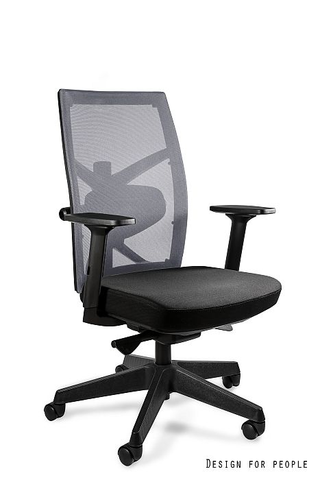 FOTEL BIUROWY TUNE M – CZARNY, SZARA SIATKA/SKÓRA NATURALNA HL-0 BIAŁA Unique