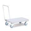 Trwały i funkcjonalny wózek magazynowy z ergonomicznym uchwytem, składaną platformą oraz kołami odpornymi na przebicie.