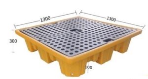 Dzięki wymiarom 130x130x30 cm, nasza paleta ociekowa zapewnia wystarczającą przestrzeń do umieszczenia czterech beczek o pojemności 200 litrów, 16 kanistrów o pojemności 25 litrów lub jednego kontenera DPPL (IBC). Bądź gotowy na wygodne i bezpieczne przechowywanie swoich materiałów, jednocześnie dbając o środowisko naturalne dzięki możliwości recyklingu naszej palety.