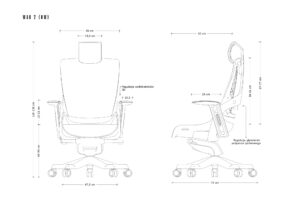 – Oś obrotu (pozioma) siedziska i oparcia znajduje się w pobliżu stawu biodrowego. Rozwiązanie to uniemożliwia przemieszczanie się oparcia względem pleców, zapewniając odpowiednie, stałe podparcie w każdej pozycji odchylenia