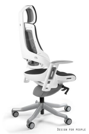 Ergonomiczny fotel Wau posiada też mechanizm ruchowy „slid”, a zagłówek, oparcie i siedzisko jest przewiewne dzięki tapicerowaniu siatką lub wykorzystaniu tworzywa o dużej sprężystości. Estetyczna podstawa z kółkami wykonana z polakierowanego aluminium powoduje, że fotel jest mobilny i znosi obciążenia do 130 kg.