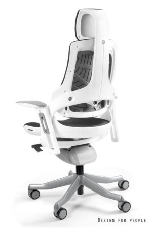 Ergonomiczny fotel Wau posiada też mechanizm ruchowy „slid”, a zagłówek, oparcie i siedzisko jest przewiewne dzięki tapicerowaniu siatką lub wykorzystaniu tworzywa o dużej sprężystości. Estetyczna podstawa z kółkami wykonana z polakierowanego aluminium powoduje, że fotel jest mobilny i znosi obciążenia do 130 kg.