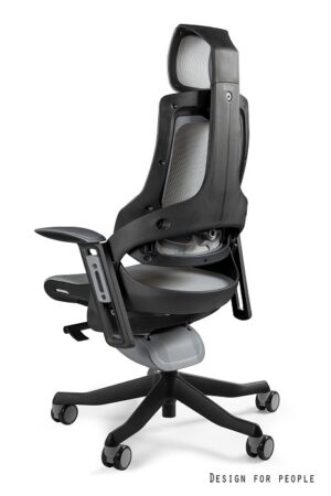Ergonomiczny fotel Wau posiada też mechanizm ruchowy „slid”, a zagłówek, oparcie i siedzisko jest przewiewne dzięki tapicerowaniu siatką lub wykorzystaniu tworzywa o dużej sprężystości. Estetyczna podstawa z kółkami wykonana z polakierowanego aluminium powoduje, że fotel jest mobilny i znosi obciążenia do 130 kg.