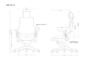 – Oś obrotu (pozioma) siedziska i oparcia znajduje się w pobliżu stawu biodrowego. Rozwiązanie to uniemożliwia przemieszczanie się oparcia względem pleców, zapewniając odpowiednie, stałe podparcie w każdej pozycji odchylenia