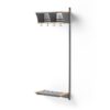 Wieszak na odzież posiada dwie przegrody, półkę z rur stalowych na nakrycia głowy i sześć haczyków kotwicowych. Stojak na buty wykonano z rur stalowych. Stalowa konstrukcja zapobiega osadzaniu się kurzu na półce. Ociekacz pod stojakiem na obuwie zbiera zanieczyszczenia i wodę, co pomaga utrzymać porządek. Oba stojaki posiadają elementy z drewna brzozowego.