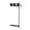 Wieszak na ubrania składa się z dwóch przegródek, górnego wieszaka na kapelusze wykonanego z rur stalowych i sześciu haczyków mocujących. Stojak na buty wykonano z rur stalowych. Stalowa konstrukcja zapobiega osadzaniu się kurzu na półce. Ociekacz pod stojakiem na obuwie zbiera zanieczyszczenia i wodę, co pomaga utrzymać porządek. Obie półki mają detale z drewna dębowego.