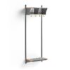 Moduł podstawowy składa się z kompaktowego wieszaka ze stojakiem na obuwie. Wieszak posiada dwie przegrody, półkę na nakrycia głowy i cztery haczyki kotwicowe. Półka na nakrycia głowy zostałą wykonana z rur stalowych, co zapobiega gromadzeniu się kurzu i zanieczyszczeń. Ociekacz pod stojakiem na obuwie zbiera zanieczyszczenia i wodę, co pomaga utrzymać porządek. Obie półki posiadają elementy z drewna brzozowego. Dwa ścienne słupki są perforowane, co umożliwia zawieszenie półek na dowolnej wysokości.