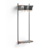 Moduł podstawowy składa się z kompaktowego wieszaka ze stojakiem na obuwie. Wieszak posiada dwie przegrody, półkę na nakrycia głowy i cztery haczyki kotwicowe. Półka na nakrycia głowy została wykonana z rur stalowych, co zapobiega gromadzeniu się kurzu i zanieczyszczeń. Ociekacz pod stojakiem na obuwie zbiera zanieczyszczenia i wodę, co pomaga utrzymać porządek. Obie półki posiadają elementy z drewna dębowego. Dwa ścienne słupki są perforowane, co umożliwia zawieszenie półek na dowolnej wysokości.