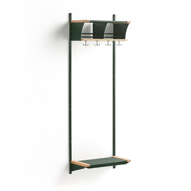 Wieszak ubraniowy JEPPE, 2 przegrody, moduł podstawowy, 1790x600x310 mm, zielony/brzoza