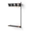 Moduł dodatkowy do wieszaka ze stojakiem na obuwie JEPPE. Ścienny słupek, stojak na obuwie z ociekaczem oraz wieszak na ubrania z trzema przegrodami i sześcioma haczykami kotwicowymi. Wymaga modułu podstawowego. Rozbuduj regał na obuwie i ubrania JEPPE przy użyciu jednego lub kilku modułów dodatkowych z lakierowanej blachy stalowej.
