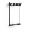 Kompaktowy moduł podstawowy wykonano z lakierowanej stali. Posiada wieszak na odzież i stojak na buty. Wieszak na odzież posiada trzy przegrody, półkę na nakrycia głowy i sześć haczyków kotwicowych. Półka na nakrycia głowy została wykonana z rur stalowych, co zapobiega gromadzeniu się kurzu i zanieczyszczeń. Ociekacz pod stojakiem na obuwie zbiera zanieczyszczenia i wodę, co pomaga utrzymać porządek. Obie półki posiadają elementy z drewna dębowego. Dwa ścienne słupki są perforowane, co umożliwia zawieszenie półek na dowolnej wysokości.