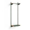 Moduł podstawowy jest malowany i składa się z kompaktowego stojaka na buty i półki na nakrycia głowy. Dwa słupki do montażu na ścianie posiadają perforacje. Dzięki temu można zamocować półkę na dowolnej wysokości. Zarówno półka na nakrycia głowy, jak i stojak na obuwie wykonano z rur stalowych z elementami z drewna dębowego. Konstrukcja z rur stalowych zapobiega gromadzeniu się kurzu i brudu na półkach. Półkę na nakrycia głowy wyposażono w dwa podwójne haczyki na płaszcze i torby. Półka na obuwie posiada ociekacz, który zbiera wodę i brud, ułatwiając utrzymanie czystości.