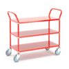 Wszechstronny i kolorowy wózek z 3 półkami i 4 kołami skrętnymi z pełnej gumy. Półki można umieścić podwyższanymi krawędziami ku górze lub ku dołowi. Kompaktowy rozmiar sprawia, że wózek idealnie sprawdzi się w niewielkim biurze. Trwały wózek, doskonały do wielu zastosowań w różnych środowiskach. Wózek jest lakierowany proszkowo na żywe kolory i wyposażony w trzy półki. Smukły i wąski design sprawia, że wózek sprawdzi się w wielu środowiskach. Szczególnie polecany do transportu w szkołach, magazynach i zakładach przemysłowych. Wygodna regulacja półek, można ustawić podwyższanymi krawędziami ku górze lub ku dołowi. Mocowanie krawędziami ku górze zapobiega spadaniu transportowanych przedmiotów z wózka. Wózek posiada praktyczne uchwyty na krótszych bokach, co sprawia, że można go wygodnie pchać i ciągnąć. Wyposażony w cztery koła skrętne dla łatwego manewrowania.