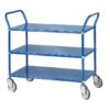 Trwały wózek wyposażony w trzy półki z możliwością odwrócenia. Posiada dwa uchwyty i cztery koła skrętne dla płynnego manewrowania. Doskonałe rozwiązanie do przechowywania i transportu. Sprawdzi się także jako mobilna stacja robocza. Praktyczny i funkcjonalny wózek z półkami. Maksymalne obciążenie każdej półki do 100 kg przy równomiernym rozmieszczeniu ładunku. Półki są dwustronne, co sprawia, że można je umieszczać podwyższaną krawędzią ku górze lub ku dołowi.