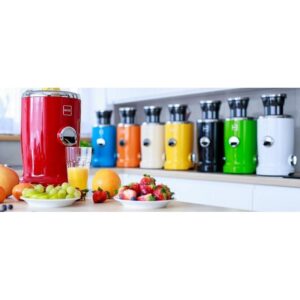 Wyciskarki Vita Juicer dostępne są w szerokiej gamie energetycznych kolorów dzięki temu idealnie wkomponują się w wystrój każdej kuchni. Urządzenia pokryte są proszkowo lakierem i wielokrotnie wypalane co sprawia, że kolory są bardzo żywe, a przy tym powłoka jest bardzo trwała i odporna na ścieranie.