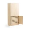 Szafa z podwójnymi drzwiami. Górna część jest zamykana i wyposażona w przestawne półki. Sekcja dolna składa się z wysuwanych szuflad. Szafa do przechowywania posiada wytrzymałe powierzchnie. Wysoka szafa do ukrytego przechowywania materiałów artystycznych i rzemieślniczych, stolarki lub materiałów tekstylnych itp.