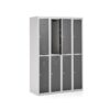 Ta praktyczna, wyjątkowo głęboka szafa do przechowywania składa się z dziesięciu oddzielnych, zamykanych przegród. Jest podzielona na dwie sekcje z pięcioma przegrodami w każdej.