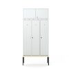 Ta praktyczna szafa do przechowywania składa się z czterech oddzielnych, zamykanych przegród i jest idealna do przechowywania na przykład rzeczy osobistych lub artykułów biurowych.