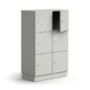 Ta praktyczna szafa składa się z sześciu oddzielnych, zamykanych przegród i jest idealna do przechowywania na przykład rzeczy osobistych lub artykułów biurowych.