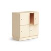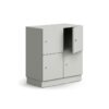 Ta praktyczna szafa do przechowywania składa się z czterech oddzielnych, zamykanych przegród i jest idealna do przechowywania na przykład rzeczy osobistych lub artykułów biurowych.