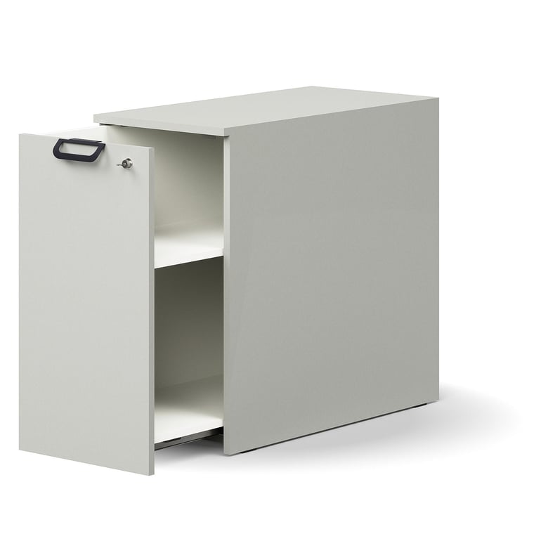Nasza praktyczna szafka boczna to kompaktowy, zamykany mebel, który można wykorzystać do przechowywania i podziału pomieszczenia na strefy. Szafka idealnie pasuje do biurka stacjonarnego, zwiększając przestrzeń roboczą i poprawiając możliwości współpracy. Wysuwana komora zapewnia dużo miejsca do przechowywania, na przykład materiałów biurowych i rzeczy osobistych, do których wymagany jest łatwy dostęp.