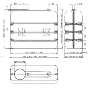 1 otwór włazowy (450 mm ø) z zakręcaną pokrywą