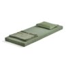 Zestaw do drzemki wielokrotnego użytku, składający się z materaca wykonanego z włókna poliestrowego lub zimnej pianki pokrytej tworzywem sztucznym, jednej poduszki, jednej bawełnianej poszewki na poduszkę, jednego pokrowca na materac i jednego bawełnianego koca. Zestaw pościeli ENKEL składa się z materaca z włókien poliestrowych lub pianki poliuretanowej pokrytej folią plastikową, poduszki z włókien poliestrowych/bawełny (30 x 40 cm), bawełnianej poszewki na poduszkę, pokrowca na materac z elastycznego dżerseju oraz bawełnianego koca (90 x 150 cm). Materac wykonany z włókien poliestrowych charakteryzuje się doskonałymi właściwościami ekologicznymi. Materac zgodny z klasyfikacją ogniową w klasie B-sl, d0. Jest wodoodporny i łatwy do wyczyszczenia. Dodatkowo wykazuje odporność na pleśń i roztocza. Nasz zestaw nadaje się do ponownego wykorzystania i jest łatwy do utrzymania w czystości.