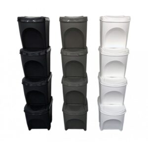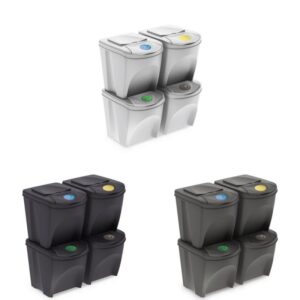 Zestaw koszy do segregacji śmieci 4x25l Sortibox pozwoli nowocześnie posortować Państwa śmieci. Pojedynczy kosz ma kształt i rozmiar pozwalający na ukrycie go w szafce pod zlewozmywakiem, natomiast ustawione trzy kosze jeden na drugim można umieścić w otwartej przestrzeni kuchni, garażu czy spiżarni.