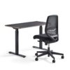 Zgrabne biurko z regulacją wysokości i krzesło biurowe z przewiewnym oparciem z siatki i mechanizmem synchronicznym. Idealny zestaw biurowy do niewielkiego pomieszczenia lub domowego biura! Kompaktowy i ergonomiczny zestaw mebli – idealny, jeśli pracujesz w domu!