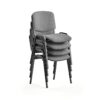 Stylowe krzesła posiadają siedziska zintegrowane z oparciami i są wyściełane dla dodatkowego komfortu. Krzesła posiadają lekkie, ale solidne ramy wykonane z metalu lakierowanego na stylowy odcień szarości.