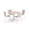 Kompaktowy i uniwersalny zestaw mebli składający się ze stołu i krzeseł wykonanych z trwałych materiałów. Doskonale nadaje się do bufetów, szkolnych stołówek i podobnych miejsc. Krzesła można układać w stosy, co ułatwia czyszczenie i przechowywanie. Poręczny komplet ze stołem i krzesłami o nowoczesnym, eleganckim wzornictwie. Meble są trwałe i łatwe do czyszczenia, dzięki czemu doskonale nadają się do pomieszczeń socjalnych, stołówek szkolnych, bufetów obiadowych itp.