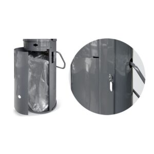 Działanie: pustą puszkę wkładamy w zgniatacz, następnie zgnieciona puszka wpada do pojemnika. Zgniecione puszki wyciąga się otwierając pojemnik zamykany na klucz.